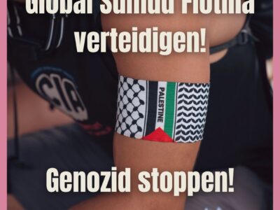 Liebe Freund*innen, Unterstützer*innen und Genoss*innen, wir rufen euch dazu auf die folgende Petition für die Sicherheit der Global Sumud Flotilla zu unterzeichnen, um ein Zeichen gegen den Krieg in Gaza zu setzen! In Gaza herrscht eine humanitäre Katastrophe: Gezielte Hungersnot, strategische Belagerungen und ununterbrochene Angriffe. Seit dem 7. Oktober sind bereits mehr als 65.000 Menschen durch das israelische Militär gestorben. Die