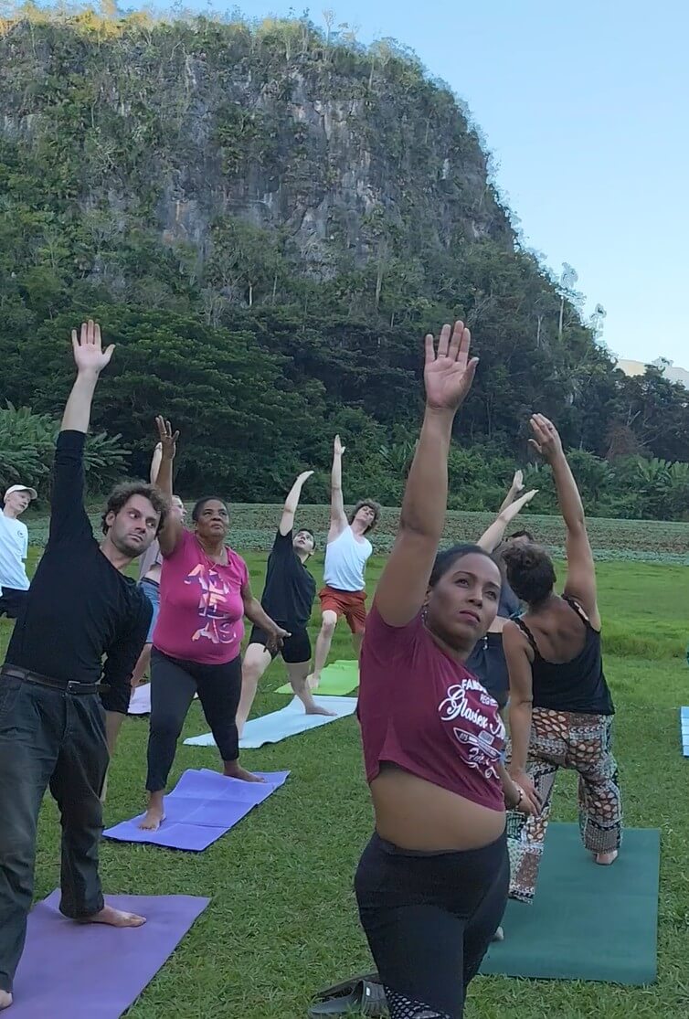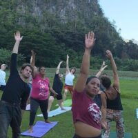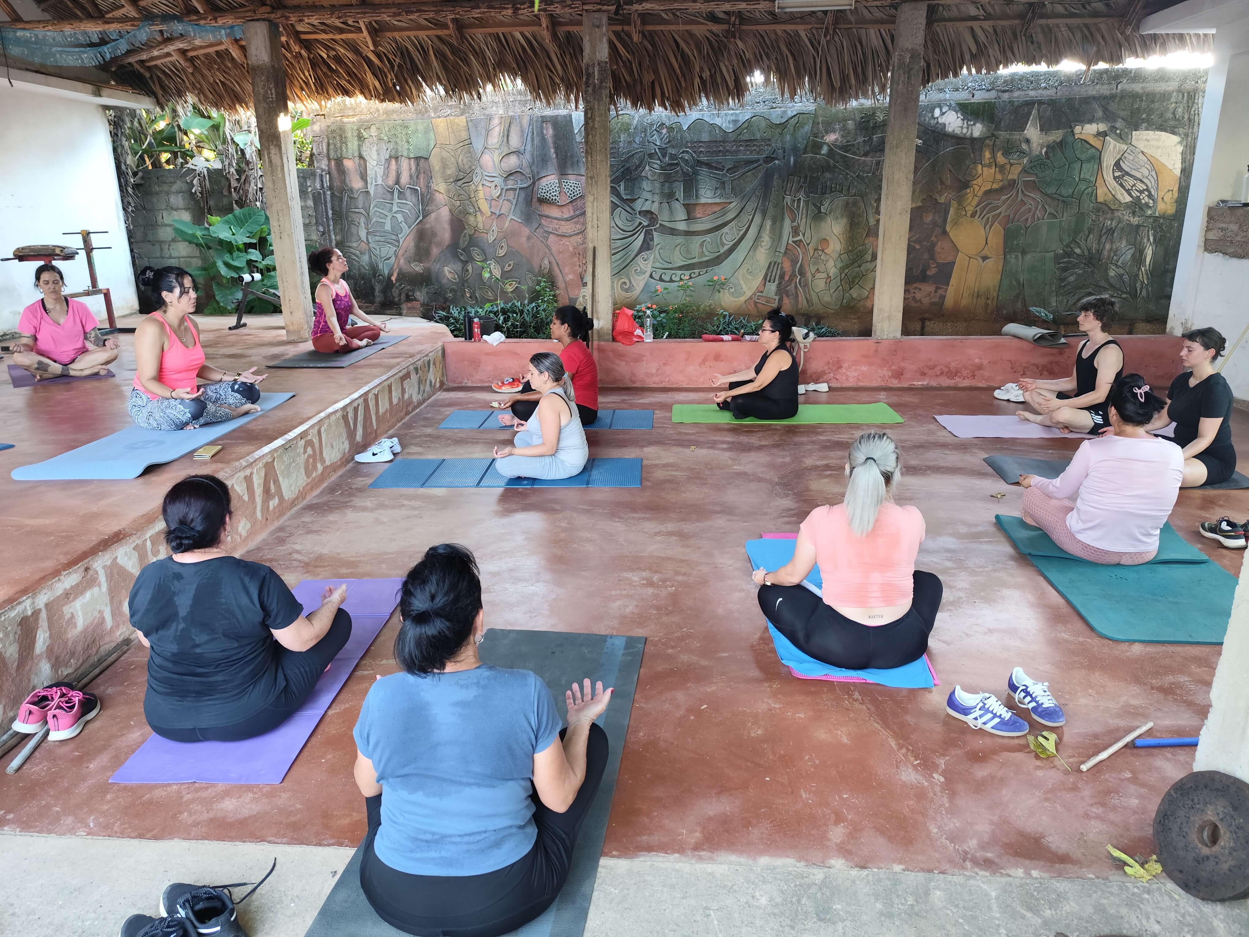 Lokale Teilnehmer*innen des Projektes haben seit einem Jahr eine Yogagruppe ins Leben gerufen. Durch ihre Initiative unternahmen wir einen Yoga-Ausflug zum „Mural de la Prehistoria“. Hier konnten körperliche Bewegung und Austausch verbunden werden, zwischen Brigadistinnen und lokalen Bewohnerinnen.