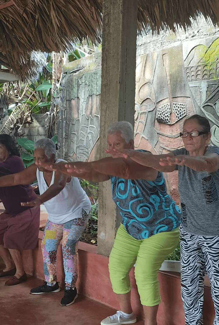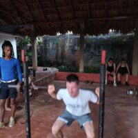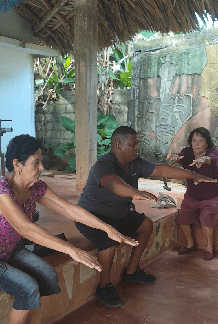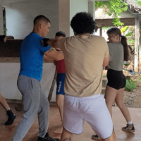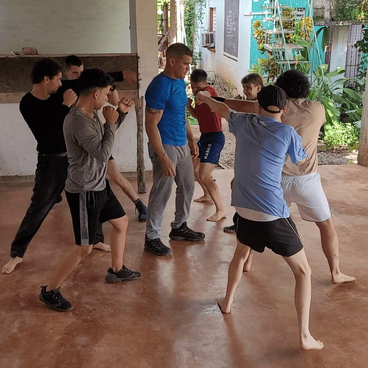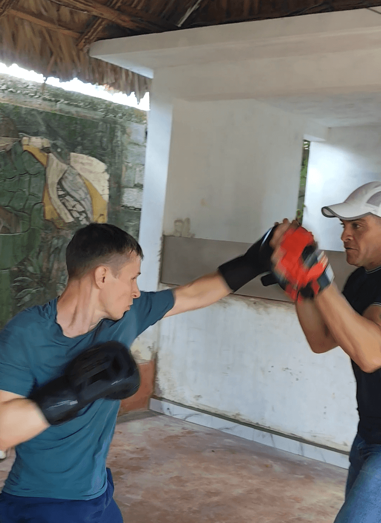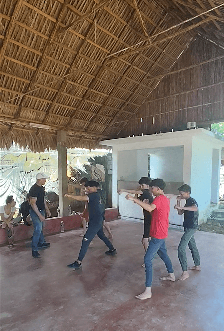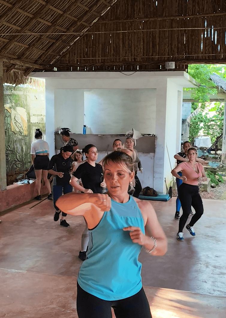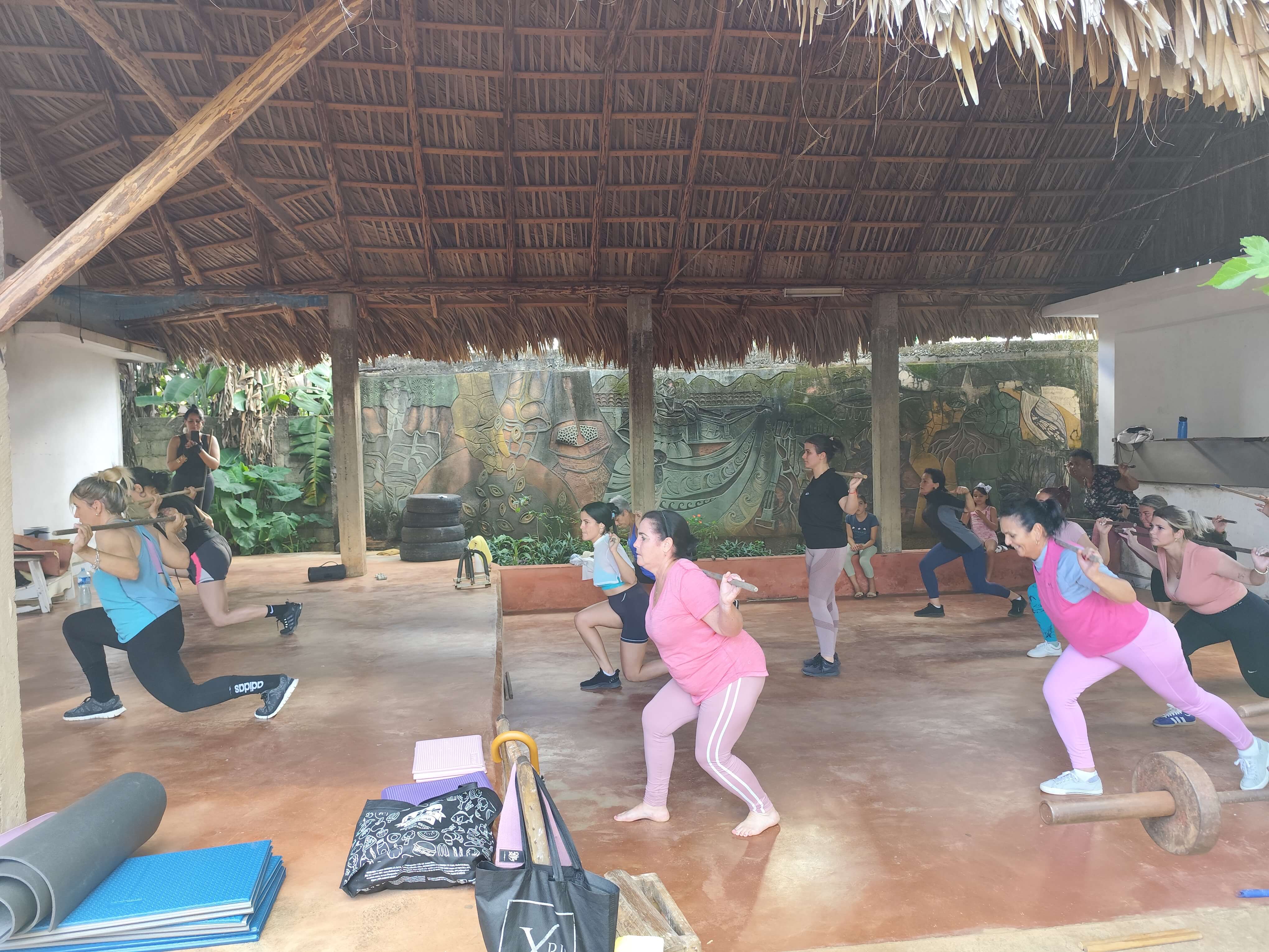 Ein zentraler Bestandteil der Brigadearbeit war die Organisation verschiedener Workshops in Zusammenarbeit mit kubanischen Partnerinnen. Gemeinsam wurden sportliche und praktische Kurse angeboten. Dazu gehörten Box-Workshops, die sowohl Grundtechniken als auch Trainingseinheiten umfassten, sowie ein Salsa-Kurs, der zusammen mit einem lokalen Tanzlehrer durchgeführt wurde. Ergänzt wurde das Programm durch Angebote für ältere Teilnehmende im Bereich Seniorensport, Yoga-Unterricht und durch Zumba-Kurse. Im neu gestalteten Fitnessraum fand regelmäßig Krafttraining statt, das von beiden Seiten – Brigadistinnen und Anwohner*innen – genutzt wurde. Darüber hinaus leitete ein Brigadist einen Baumschnittkurs, der die Grundlage des Obstbaumschnitts vermittelte.