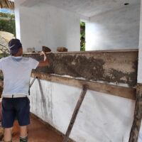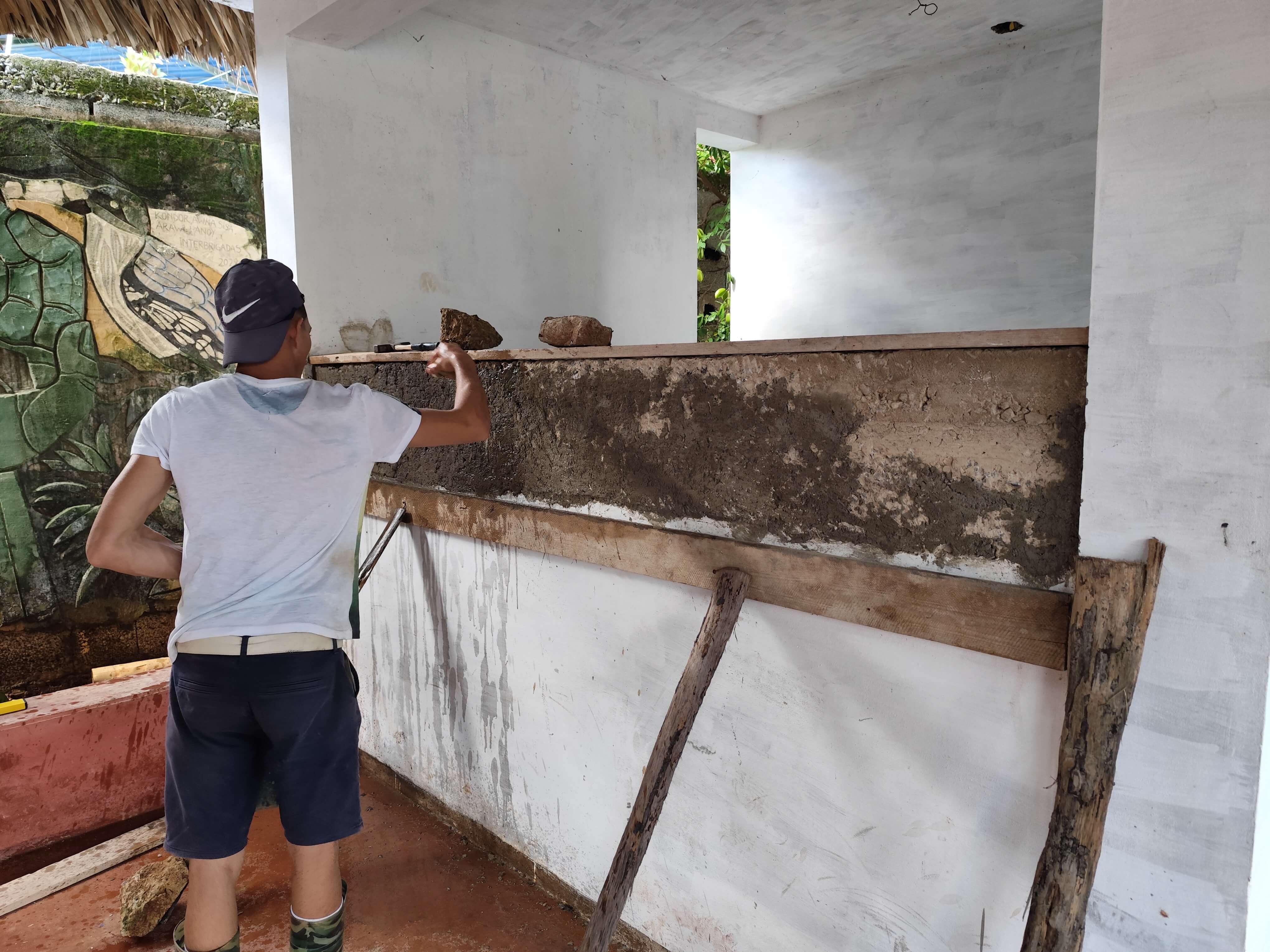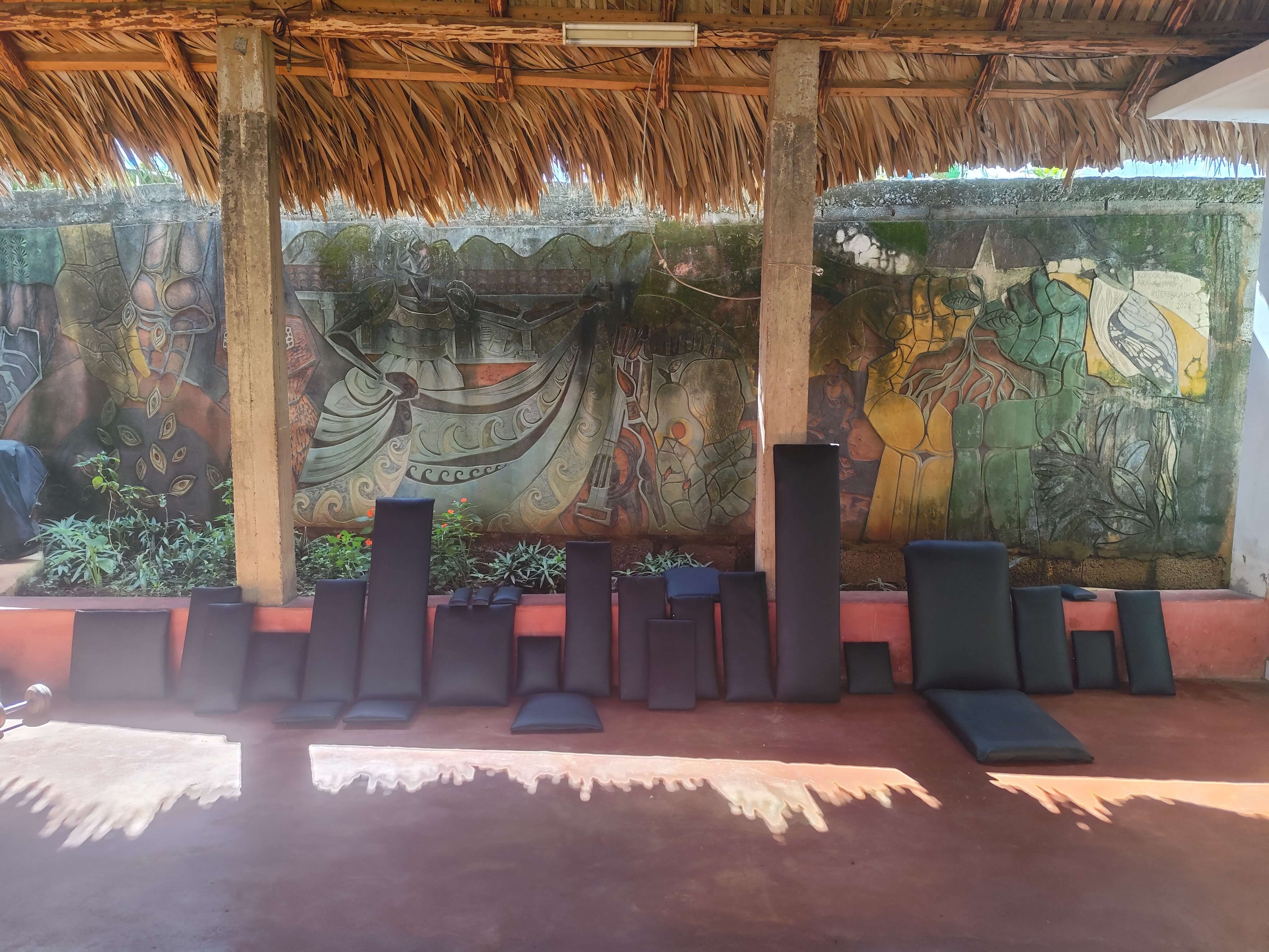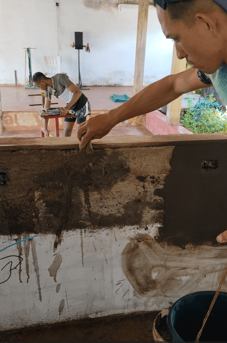 Außerdem wurde der Fußboden im Fitnessraum erweitert, indem ein Weg aufgeschüttet und darauf eine neue Bodenplatte gegossen wurde. Dadurch wurde der Fitnessbereich vergrößert und ein stabiler, nutzbarer Raum für Kraft- und Bewegungsangebote geschaffen. Das Fitnessstudio ist derzeit einer der wichtigsten Räume des Projekts, da es die Austauschdynamik mit der Gemeinde aufrechterhält. Es ist nicht nur ein Ort für körperliches oder individuelles Training, sondern auch ein Raum für informellen Austausch, Diskussionen und gemeinschaftliche Organisation. Daher war seine Renovierung ein essenzieller Bestandteil unserer Arbeit vor Ort
