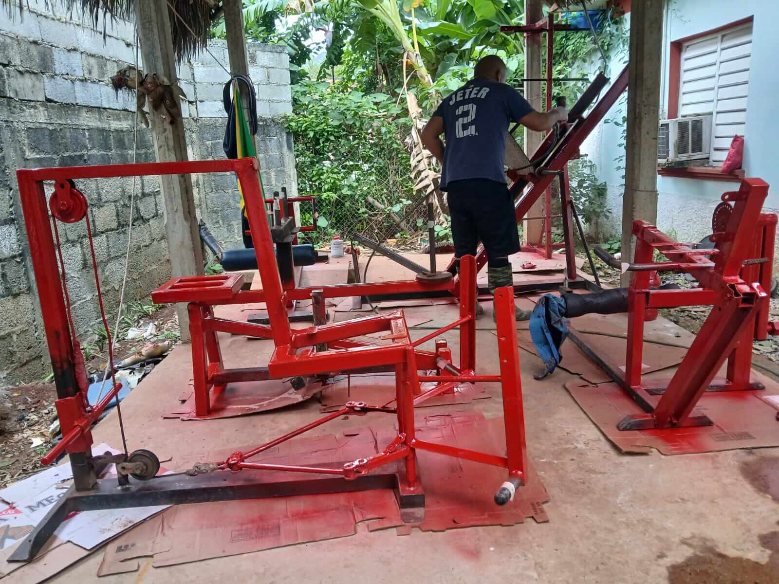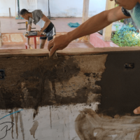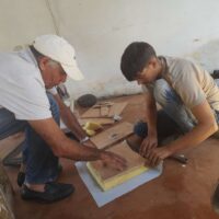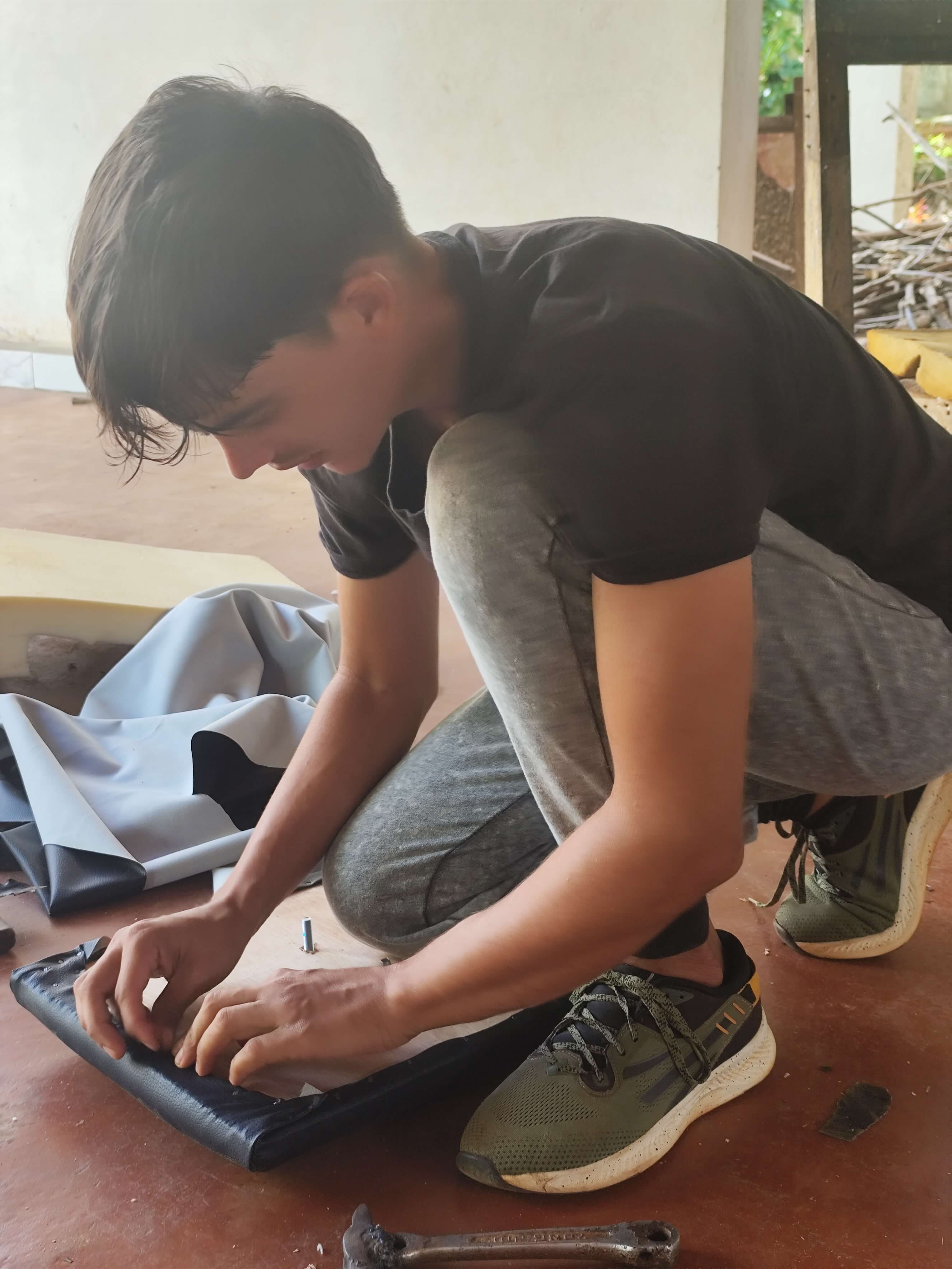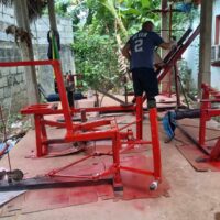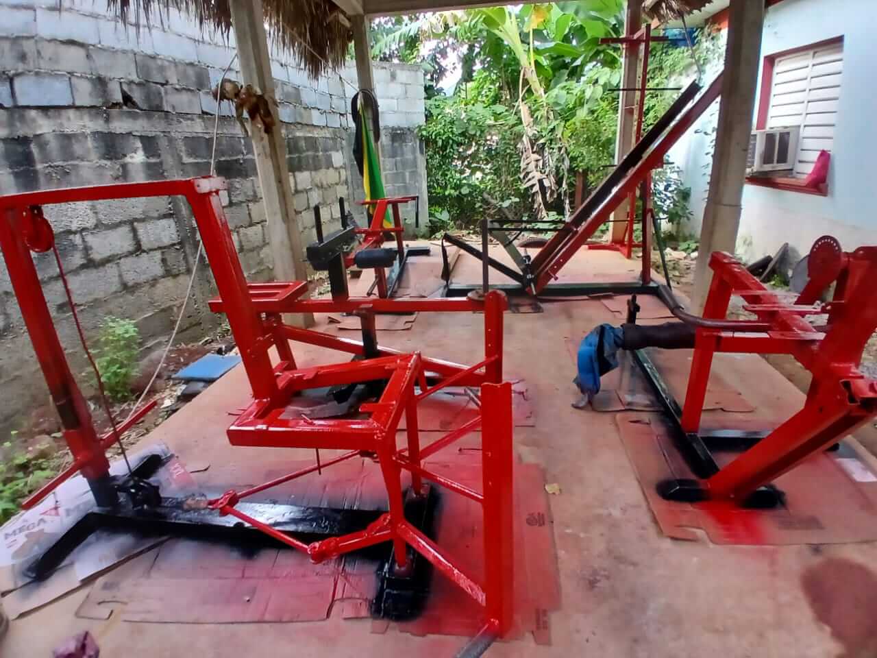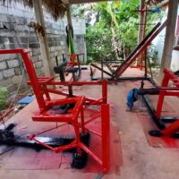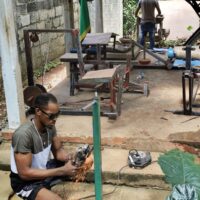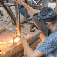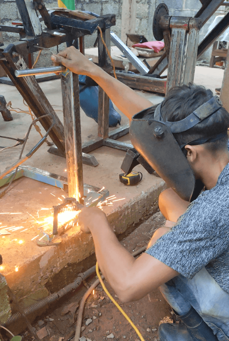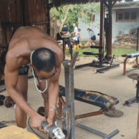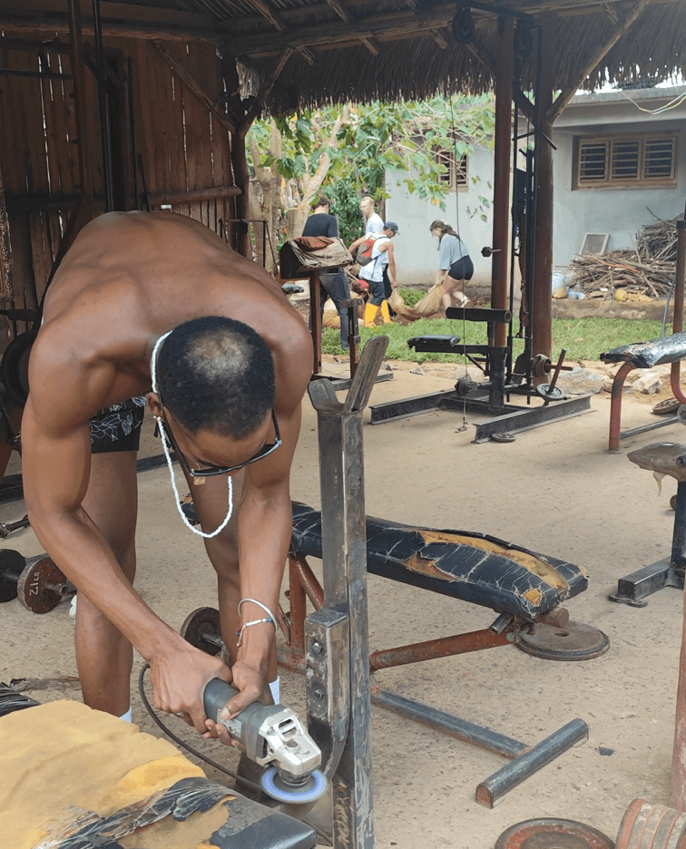 In der Sportanlage des Projekts wurden vorhandene Geräte abgeschliffen, geschweißt, Sitze zugesägt und mit Kunstleder neu bezogen. Die Geräte waren teilweise verrostet oder beschädigt. Wir haben uns vorgenommen, die Geräte sicher, funktional und ästhetisch aufzubereiten. Die Arbeit erfolgte in Teamarbeit mit lokalen Handwerker*innen, die wir mit Materialien und Arbeitskraft unterstützten.