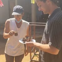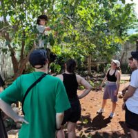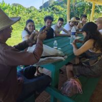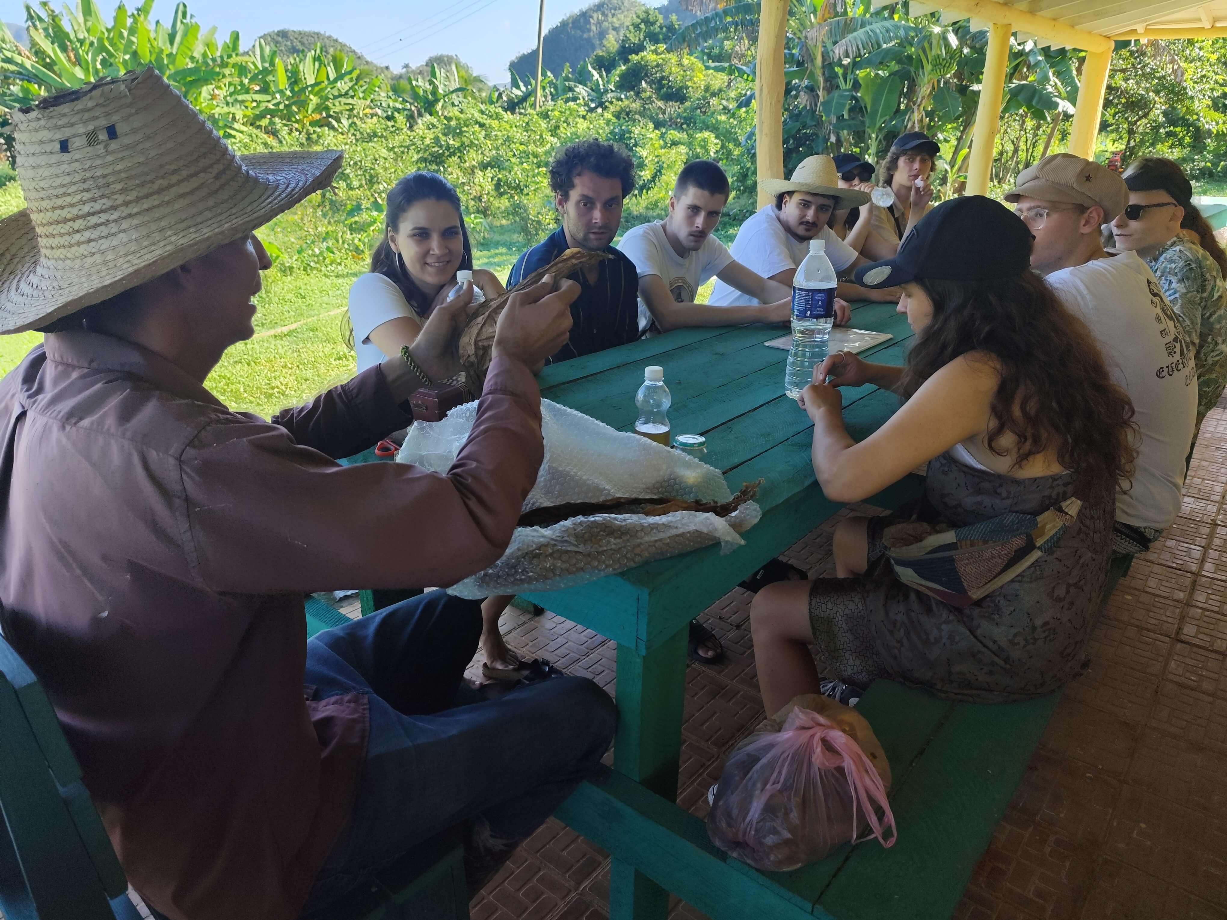 Unsere Gruppe erntete während des Brigadezeitraums Kaffee auf dem Projektgrundstück und verarbeitete ihn, vom Gären, Entschalen, Rösten bis hin zur Mahlung. Eine Exkursion führte uns zudem zu einer Tabakanbau-Finca, um den Prozess von Anbau über Ernte bis Weiterverarbeitung kennenzulernen und den kubanischen Exportschlager Zigarre auch selber zu verkosten.