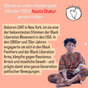 Einen Infopost über unsere Beweggründe die Brigade Assata Shakur zu widmen, findet ihr auf Instagram.